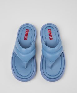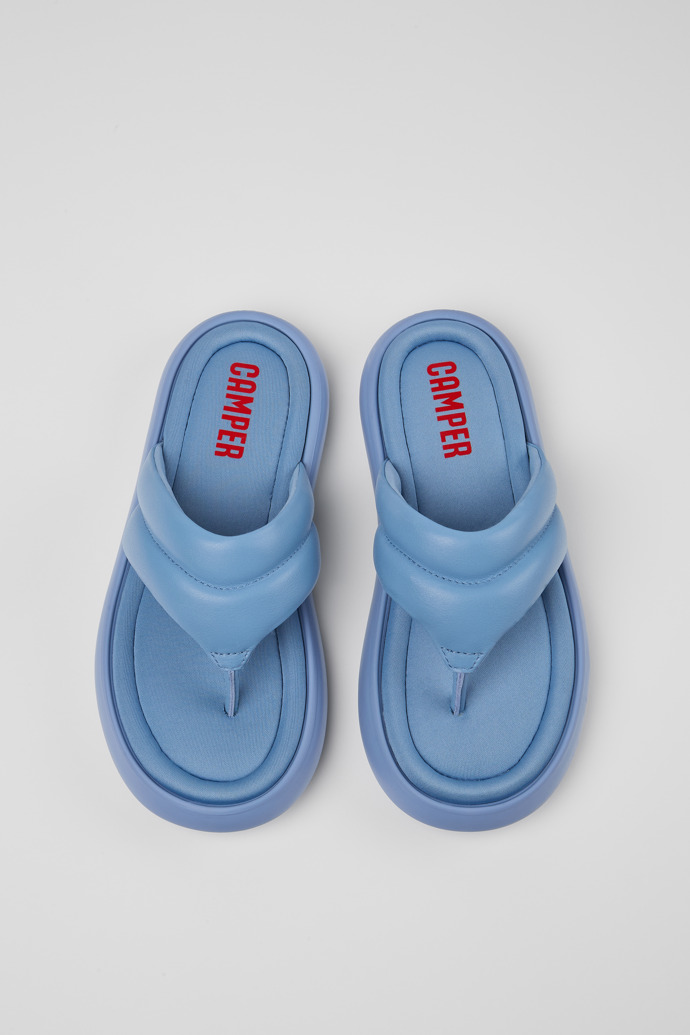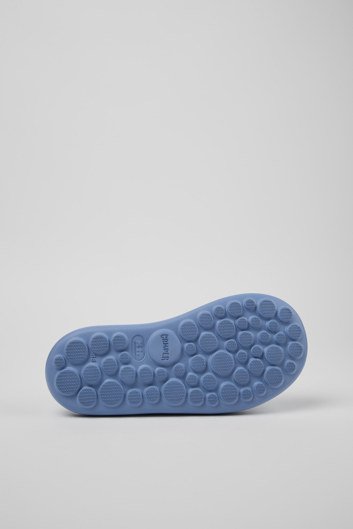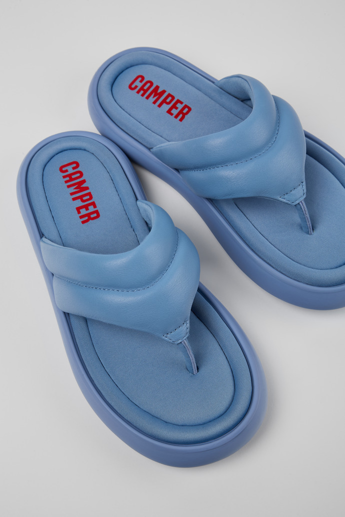 Chanclas azules para mujer, con piel curtida con menos agua, forros de neopreno reciclado, plantillas de EVA y suelas XL Extralight® Organix™ 3.0 con un 30% de componentes biocirculares.Combinando volumen y simplicidad del diseño, Pelotas Flota cuenta con una suela de origen natural que proporciona bienestar y acolchado.