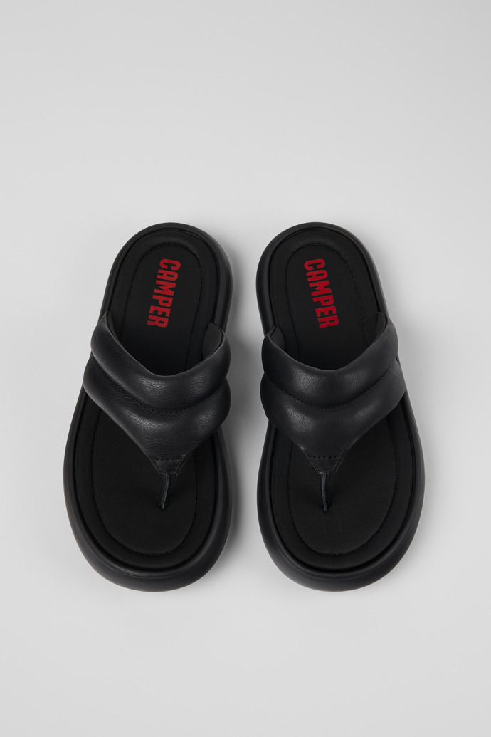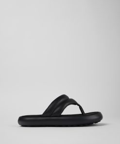 Chanclas negras para mujer, con piel curtida con menos agua, forros de neopreno reciclado, plantillas de EVA y suelas XL Extralight® Organix™ 3.0 con un 30% de componentes biocirculares.Combinando volumen y simplicidad del diseño, Pelotas Flota cuenta con una suela de origen natural que proporciona bienestar y acolchado.