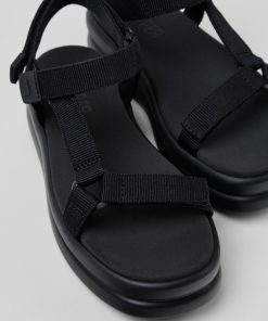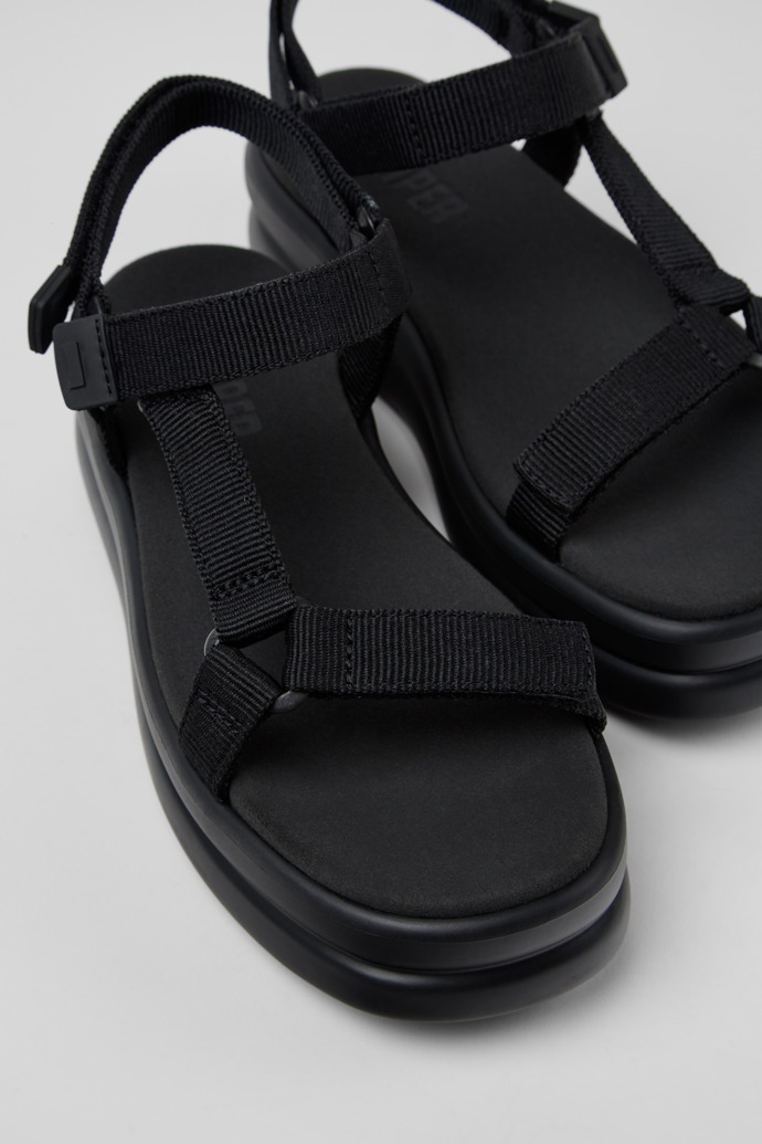 Sandalias para mujer en PET reciclado negro con plantillas de EVA, sistema de autocierre y suelas de EVA XL EXTRALIGHT®.Esta nueva versión de Pelotas Flota, inspirada una vez más en objetos inflables, ofrece una altura extra con un diseño único de fácil ajuste y un aspecto fresco y veraniego.