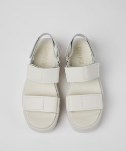 Sandalias para mujer en piel blanca con plantilla de EVA, sistema de autocierre y suelas de EVA XL EXTRALIGHT®.Esta nueva versión de Pelotas Flota, inspirada una vez más en objetos inflables, ofrece una altura extra con un diseño único de fácil ajuste y un aspecto fresco y veraniego.