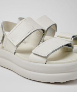 Sandalias para mujer en piel blanca con plantilla de EVA, sistema de autocierre y suelas de EVA XL EXTRALIGHT®.Esta nueva versión de Pelotas Flota, inspirada una vez más en objetos inflables, ofrece una altura extra con un diseño único de fácil ajuste y un aspecto fresco y veraniego.