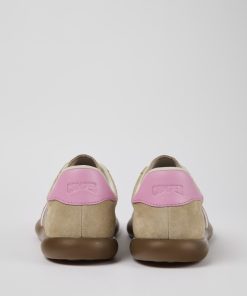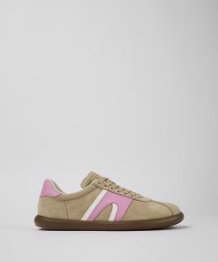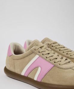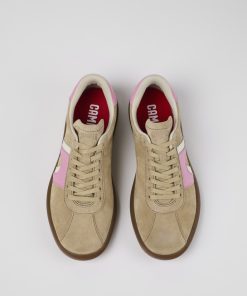 Sneakers de nobuk/piel beige para mujer, con plantillas OrthoLite® recicladas y suelas 100% goma.Con un nombre inspirado en un pequeño pueblo de Mallorca, Pelotas Soller es una sneaker de verano auténtica y modesta creada con una cantidad mínima de materiales.