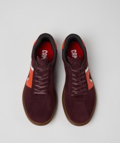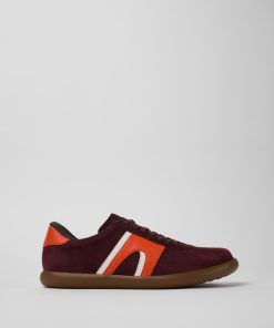 Sneakers para hombre en nobuk/color burdeos y piel con cierres de cordón, plantillas recicladas OrthoLite® y suelas de goma.Inspiradas en un pequeño pueblo en Mallorca, las Pelotas Soller son unas sneakers de verano sencillas y sin pretensiones, elaboradas con los mínimos componentes.