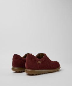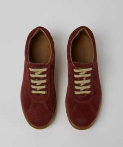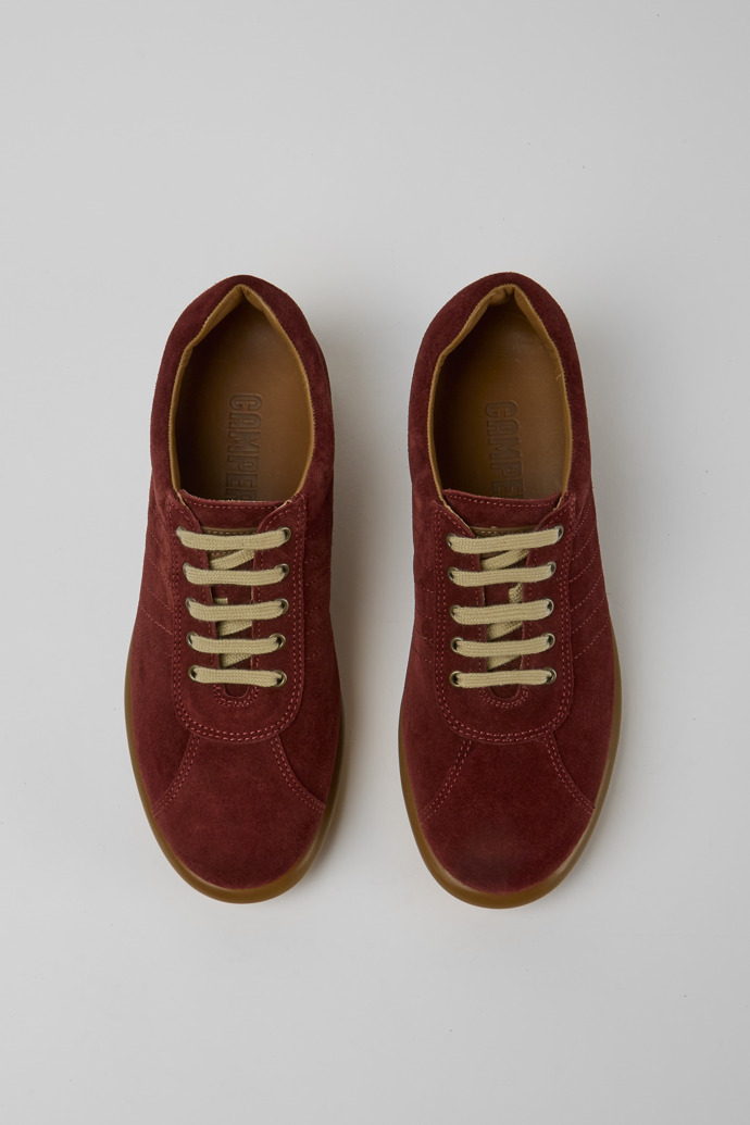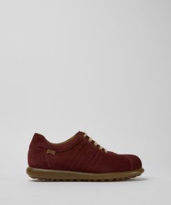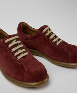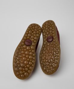 Zapato de diseño inconfundible rojo para mujer. Empeine de nobuck y suela de goma natural.Pelotas es el zapato para mujer más icónico de Camper. Posee una suela deportiva única, compuesta por 87 esferas de las que procede su nombre, “Pelotas”. El modelo se renueva cada temporada sin dejar de mantenerse siempre fiel a sus raíces.