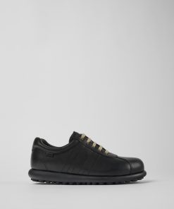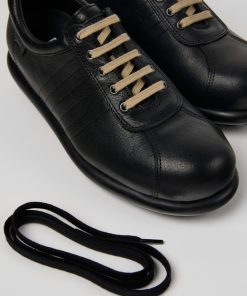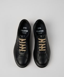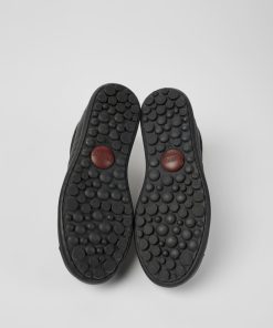 Zapatos negros para mujer de cuero curtido vegetal con plantillas de PU y suelas de goma.Nuestra Garantía de por vida es el compromiso de años de artesanía, calidad y diseño duradero.Pelotas Ariel es el modelo más icónico de Camper. Con una inconfundible suela inspirada en el deporte y compuesta por 87 esferas, cada par está fabricado a mano con pieles europeas cosidas en 360º a la suela de goma original.