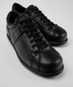 Zapatos negros de piel vacuna de curtido vegetal para hombre con plantillas de PU y suelas de goma.Nuestra garantía de por vida es testimonio de una vida de elaboración artesanal, calidad y diseño duradero.Pelotas Ariel es el icono indiscutible de Camper. Con su suela deportiva única, compuesta por 87 esferas, cada par se fabrica de manera artesanal con pieles europeas con cosido 360º en su suela de goma original.