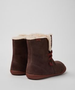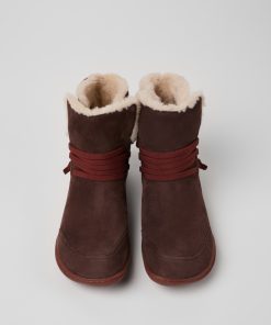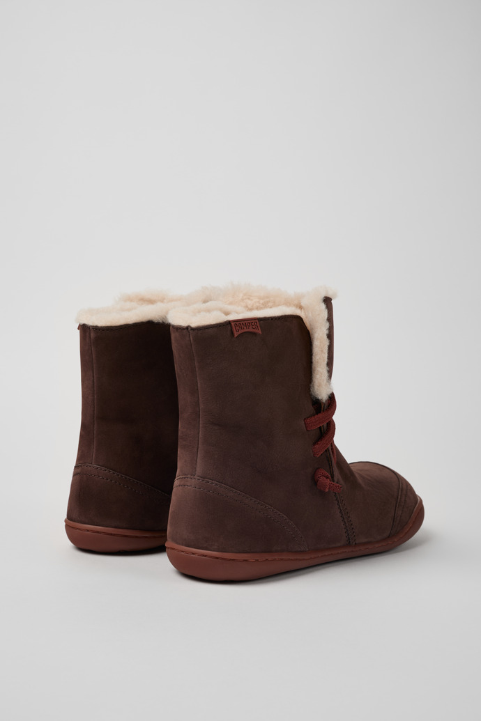 Botines para mujer en nobuk marrón con suelas de TPU (20% reciclado).Un icono de Camper que evoluciona cada temporada. Peu es la simplicidad funcional inspirada en la acción de caminar descalzo. Está cosido en 360 grados y construido con la técnica de construcción Strobel, garantizando flexibilidad y durabilidad inigualables en cualquier situación.