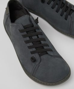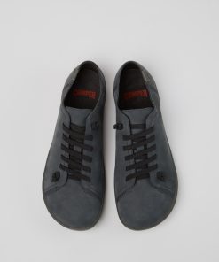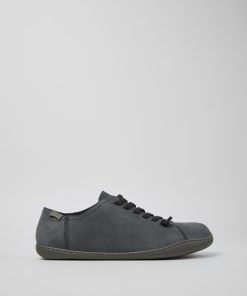 Zapatos grises de piel vacuna sin cromo y nobuk para hombre con plantillas de PU, cordones elásticos y suelas de TPU (20% recicladas).Peu, un icono Camper que evoluciona cada temporada, plasma la sencillez funcional inspirada en el placer de caminar descalzo. Incorpora cosido 360º y se ha creado con una técnica de construcción Strobel, que garantiza flexibilidad y durabilidad incomparables en cualquier situación.