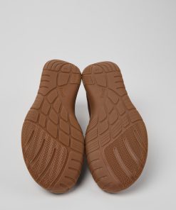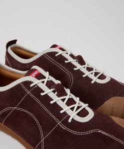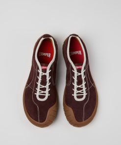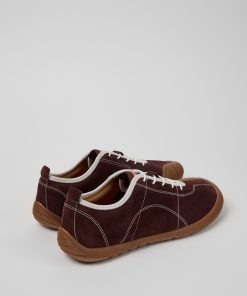 Sneakers burdeos de piel porcina y nobuk para hombre con plantillas OrthoLite® Recycled™ y suelas de goma reciclada (23% recicladas).Peu Path, una sneaker ergonómica diseñada con un enfoque de caminar descalzo, está confeccionada con materiales reciclados y naturales y tiene una de las huellas de carbono más bajas de la colección.