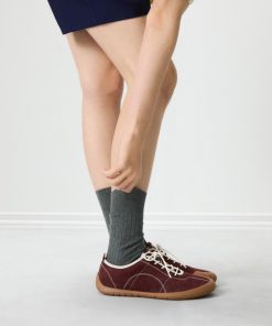 Sneakers burdeos de piel porcina y nobuk para hombre con plantillas OrthoLite® Recycled™ y suelas de goma reciclada (23% recicladas).Peu Path, una sneaker ergonómica diseñada con un enfoque de caminar descalzo, está confeccionada con materiales reciclados y naturales y tiene una de las huellas de carbono más bajas de la colección.