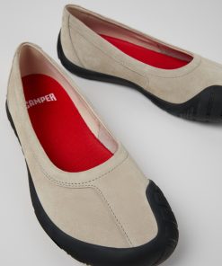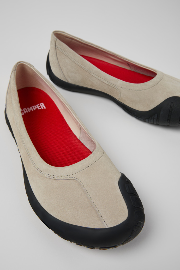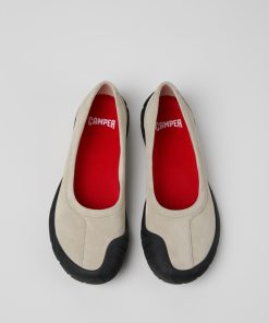 Sneakers grises para mujer en nobuk con plantillas OrthoLite® Recycled™ y suelas de goma (23% reciclada).Path, una sneaker ergonómica diseñada con un enfoque de caminar descalzo, está confeccionada con materiales reciclados y naturales y tiene una de las huellas de carbono más bajas de la colección.