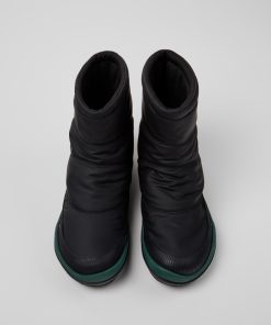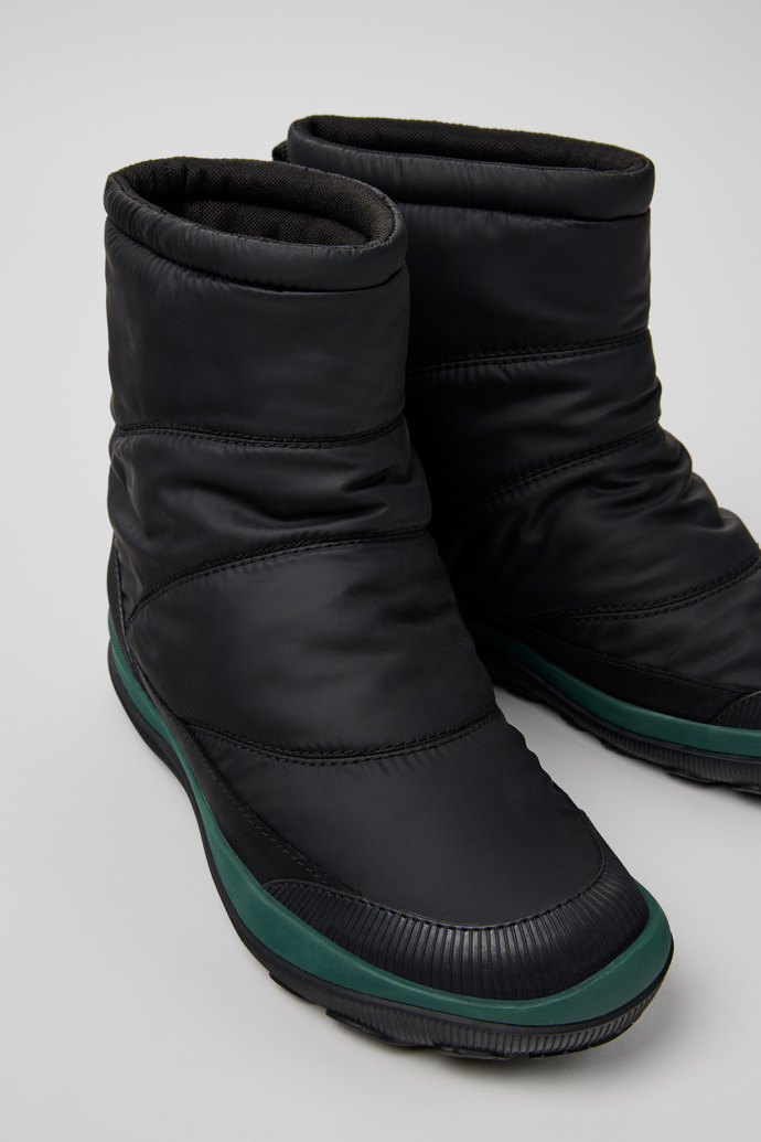 Botas de media caña negras para mujer de piel y tejido con membranas GORE-TEX ePE, plantillas OrthoLite® Recycled™, entresuelas de EVA y suelas de goma MICHELIN® (27% natural).Peu Pista es la versión invernal de nuestro icónico Peu. Un estilo para todo tipo de climas, con forro GORE-TEX resistente al invierno, suela Michelin y una plantilla extraíble para mayor amortiguación.