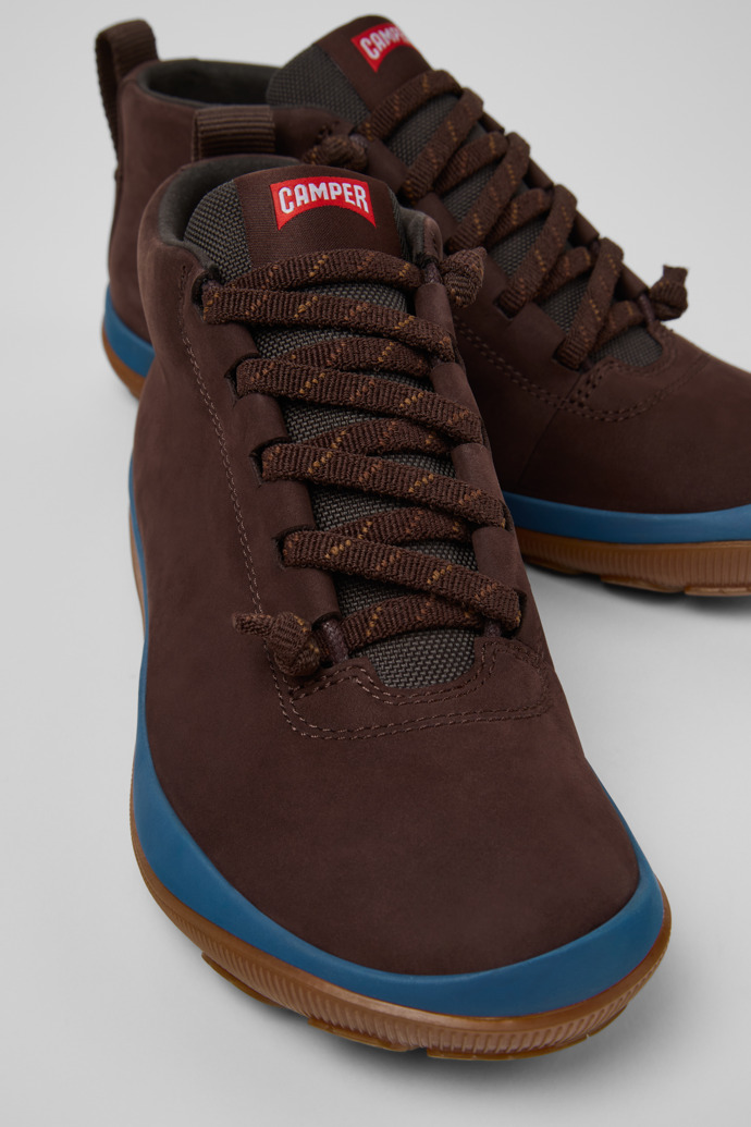 Botines marrones y grises para mujer en nobuk y tejido con membranas GORE-TEX®, plantillas OrthoLite® Recycled™, cordones elásticos, entresuelas de EVA y suelas de goma Michelin.Peu Pista es la versión invernal de nuestro icónico Peu. Un estilo para todo tipo de climas, con forro GORE-TEX resistente al invierno, suela Michelin y una plantilla extraíble para mayor amortiguación.