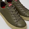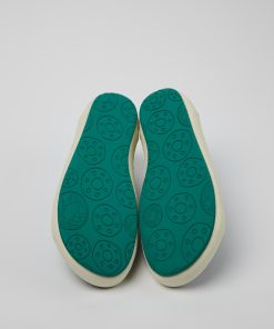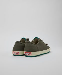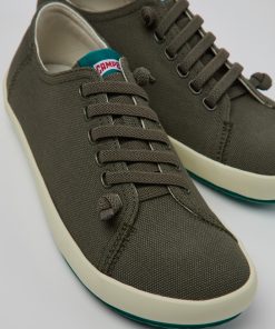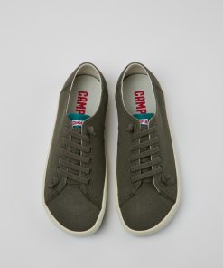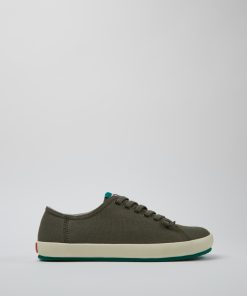 Sneakers para hombre de algodón reciclado verde con plantilla OrthoLite® Recycled™, cordones elásticos y suelas de goma.Nuestro Peu Rambla presenta los característicos cordones en zig-zag y mezcla de materiales para un estilo casual con un toque divertido.