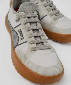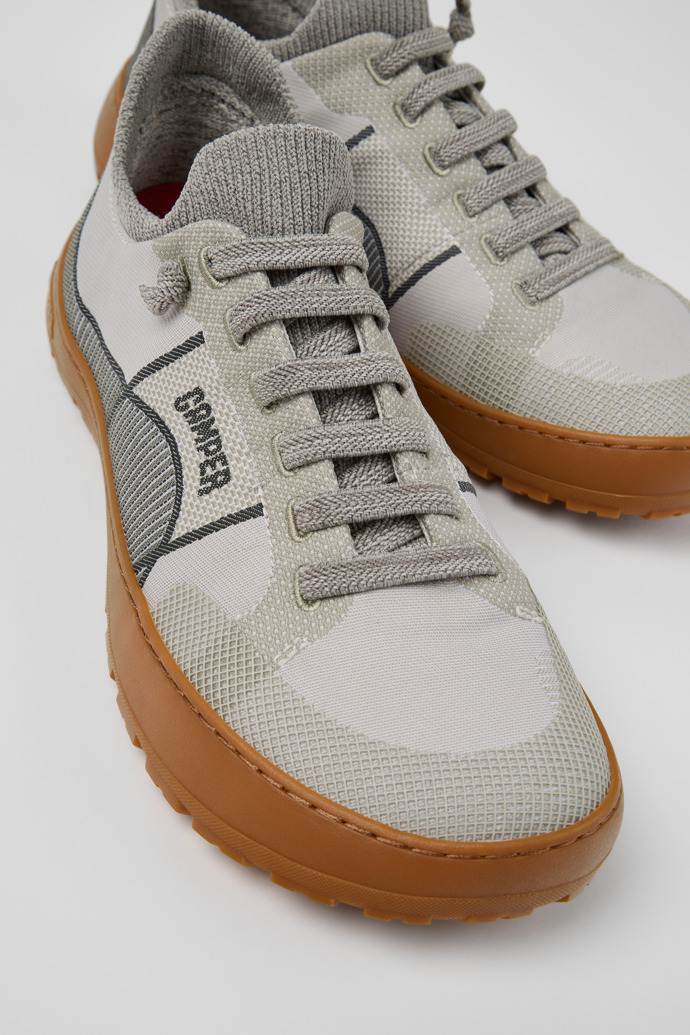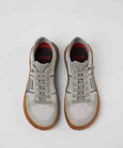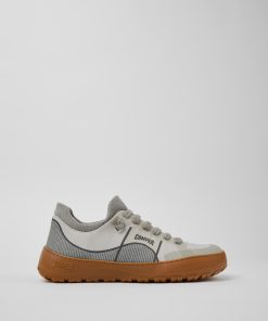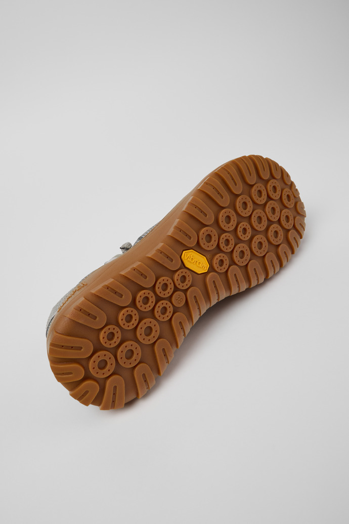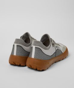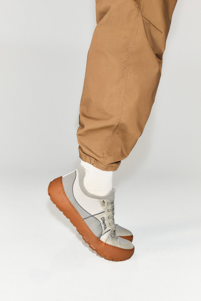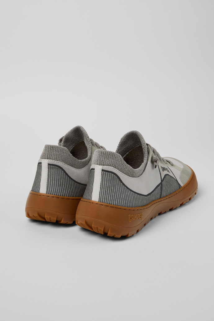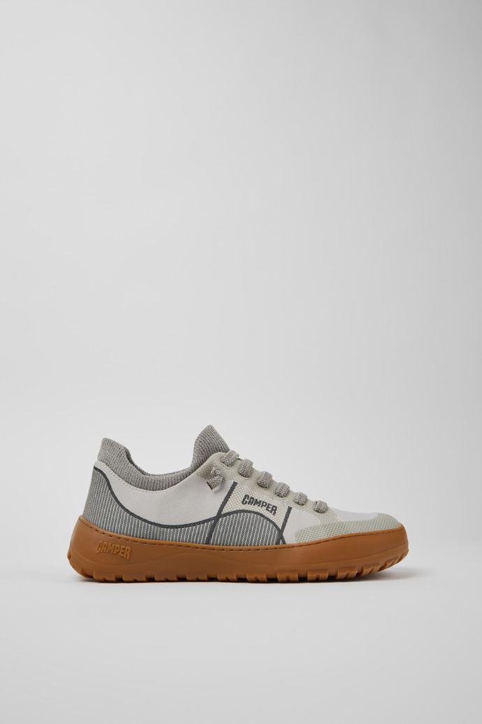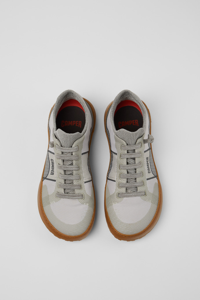 Sneakers para mujer de diseño técnico de PET reciclado y calcetín interior de ajuste cómodo gris y blanco con plantilla de EVA, cordones elásticos y suelas Vibram (30% recicladas).El Peu más deportivo combina materiales extraduraderos, una construcción con cosido 360º y una suela Vibram para mejor agarre.