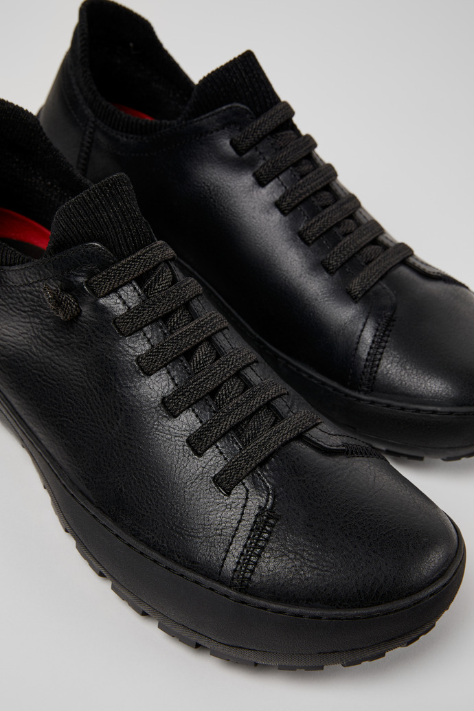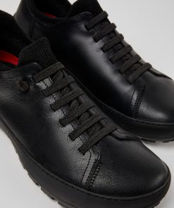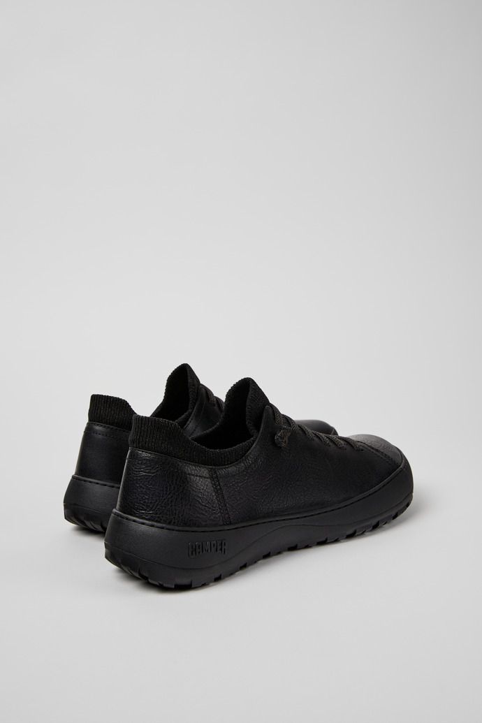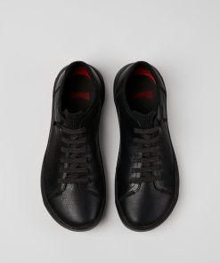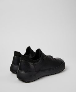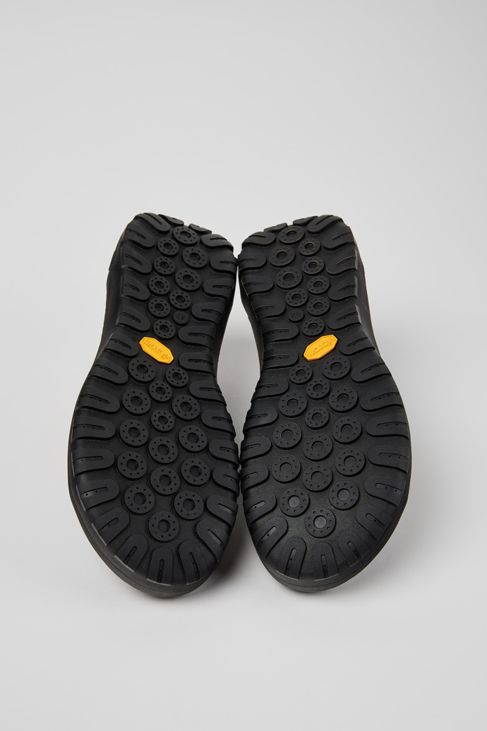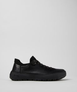 Zapatos negros de piel vacuna regenerativa y tejido para hombre, con calcetín interior de ajuste fácil, plantillas de EVA, cordones elásticos y suelas Vibram Ecostep (30% recicladas).El Peu más deportivo combina materiales extraduraderos, una construcción con cosido 360º y una suela Vibram para mejor agarre.