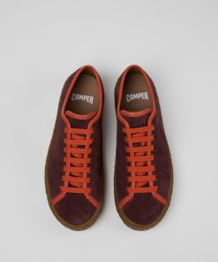 Zapatos en tonos burdeos y naranja para mujer en piel vacuna y nobuk con plantillas OrthoLite® Recycled™ y suelas de goma.Luce un look casual con Peu Terreno, un estilo relajado con una suela de goma crepé cosida 360° que ofrece mayor durabilidad y protección.