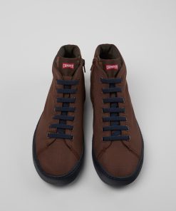 Bota sneaker para hombre en PET reciclado marrón con plantilla OrthoLite® Recycled™, cordones elásticos y suelas de EVA (20% reciclada).Peu Touring es una versión más deportiva y contemporánea de nuestro icónico Peu, con mejoras técnicas y su reconocible curva en la suela.