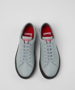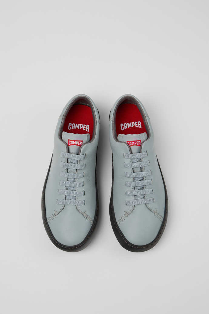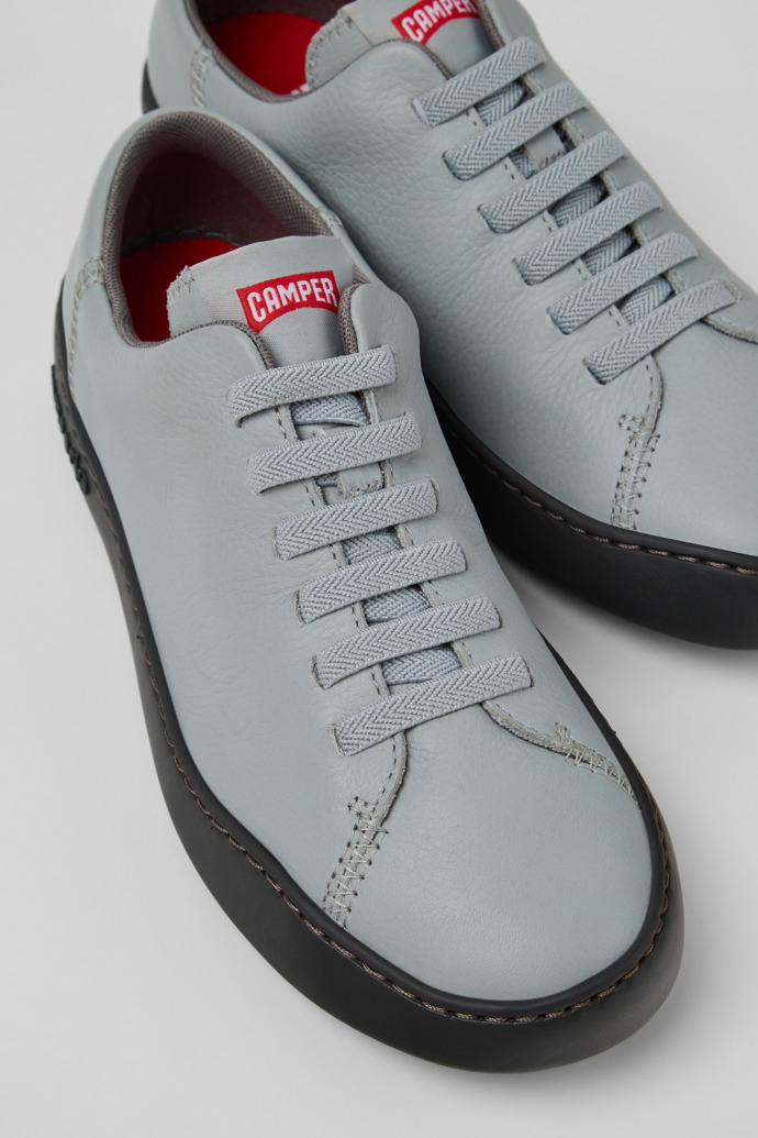 Sneakers grises para mujer de piel vacuna con plantillas OrthoLite® Recycled™, cordones elásticos y suelas de EVA.Peu Touring es una versión más deportiva de nuestro icónico Peu, con mejoras técnicas y su reconocible curva en la suela.