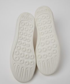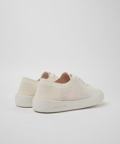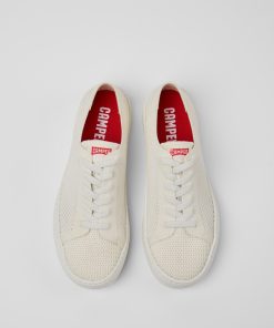 Sneakers blancos para mujer fabricados con PET reciclado, con plantillas OrthoLite® Recycled™, cordones elásticos y suelas de EVA reciclado (20% reciclado).Peu Touring es una versión más deportiva y contemporánea de nuestro icónico Peu, con mejoras técnicas y una curva reconocible en la suela.