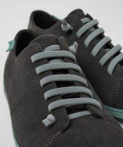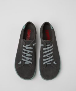 Zapato para hombre en nobuk gris con plantilla de PU, cordones elásticos y suelas de TPU (20% recicladas).Un icono de Camper que evoluciona cada temporada. Peu es simplicidad funcional inspirada en la acción de caminar descalzo. Cosido en 360º y construido con la técnica Strobel, garantiza flexibilidad y durabilidad inigualables en cualquier situación.