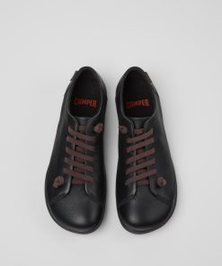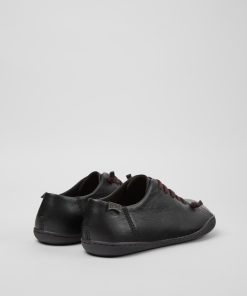 Zapatos negros para mujer de piel vacuna con plantillas de PU, cordones elásticos y suelas de goma.Un icono de Camper que evoluciona cada temporada. Peu es simplicidad funcional inspirada en la acción de caminar descalzo. Cosido en 360º y construido con la técnica Strobel, garantiza flexibilidad y durabilidad inigualables en cualquier situación.
