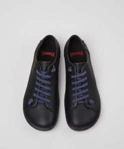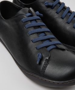 Zapatos negros de piel vacuna para hombre con plantillas de PU, cordones elásticos y suelas de TPU reciclado (20% recicladas).Peu, un icono Camper que evoluciona cada temporada, plasma la sencillez funcional inspirada en el placer de caminar descalzo. Incorpora cosido 360º y se ha creado con una técnica de construcción Strobel, que garantiza flexibilidad y durabilidad incomparables en cualquier situación.