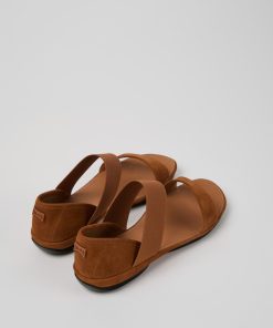 Sandalias para mujer de nobuk marrón con plantilla de PU y suela de goma reciclada (20% reciclada).Lanzada por primera vez en 2005, nuestra Right combina la flexibilidad de unas bailarinas con la protección duradera de unas suelas de goma listas para la vida en la calle.