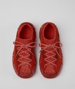 Zapatillas rojas para mujer, con un calcetín de punto en 3D de poliéster reciclado, plantillas de EVA y suelas XL Extralight® Sustainable+.Un zapato modular de seis piezas diseñado para ser reciclado, montado y desmontado, reparado y personalizado por ti.Cuando compras un par de zapatos ROKU, te llegarán totalmente montados. Pero siempre puedes aprender a desmontarlos ¡para volver a montarlos!