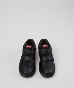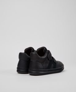 Sneaker botín negro para niños en piel y nobuk con plantilla OrthoLite® Recycled™, sistema de autocierre y suelas de runner.Nuestra sneaker Runner para niños es una versión en miniatura de nuestro diseño original y deportivo que nació en 1992.