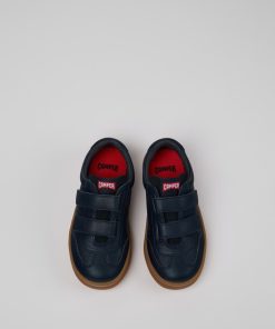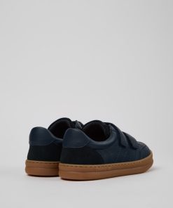 Sneakers azules para niños en piel y nobuk con plantillas OrthoLite® Recycled™, cordones elásticos, sistema de autocierre y suelas de runner.Nuestra sneaker Runner para niños es una versión en miniatura de nuestro diseño original y deportivo que nació en 1992.