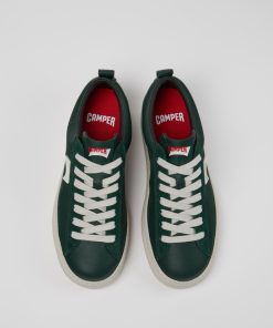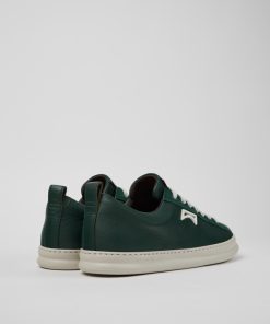 Sneakers verdes de piel vacuna y nobuk para hombre con plantillas OrthoLite® Recycled™ y suelas XL EXTRALIGHT® de EVA.Nuestro icónico Runner nació en 1982 y supuso el primer acercamiento de Camper al mundo del deporte. Esta sneaker masculina ofrece un look desenfadado que combina piel suave y una silueta deportiva con un modelo reinventado de nuestros archivos.