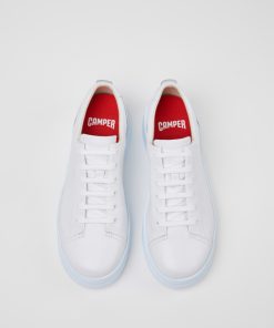 Sneakers blancas para mujer de piel vacuna con plantillas OrthoLite® Recycled™ y suelas de EVA XL EXTRALIGHT®.Runner Up es la versión femenina de Runner, un modelo icónico de Camper lanzado en 1982 que marcó nuestro primer paso en el mundo del deporte. Estas sneakers para mujer ofrecen un look relajado y un sutil tacón de plataforma, con una silueta deportiva inspirada en los 80s.