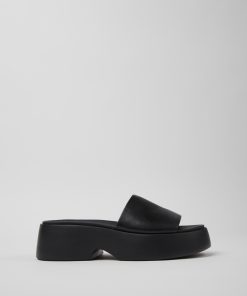 Sandalia para mujer en piel negra con plantilla de EVA y suelas de EVA XL EXTRALIGHT®.Tasha es una atrevida plataforma con plantilla anatómica, suela ligera y empeine suave y acolchado que se convertirá en tu compañera diaria del verano.