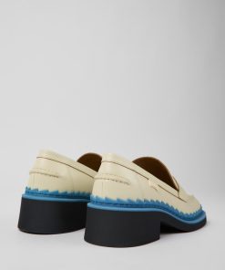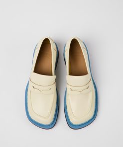 Mocasines blancos y azules para mujer con plantillas extraíbles OrthoLite® Recycled™ y suelas de TR.Taylor combina un modelo clásico y detalles divertidos con mejores materiales y componentes reciclados.
