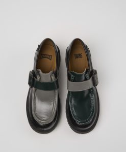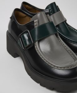 Mocasines para mujer en piel negra y gris con plantillas OrthoLite® y suelas 100% de EVA.Nacido en 1988, nuestro concepto clásico —opuesto pero complementario— desafía la idea de que los zapatos deben ser idénticos, y continúa vivo en este modelo para mujer desparejado para formar un par realmente único.