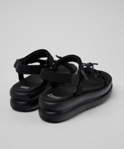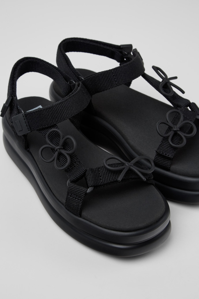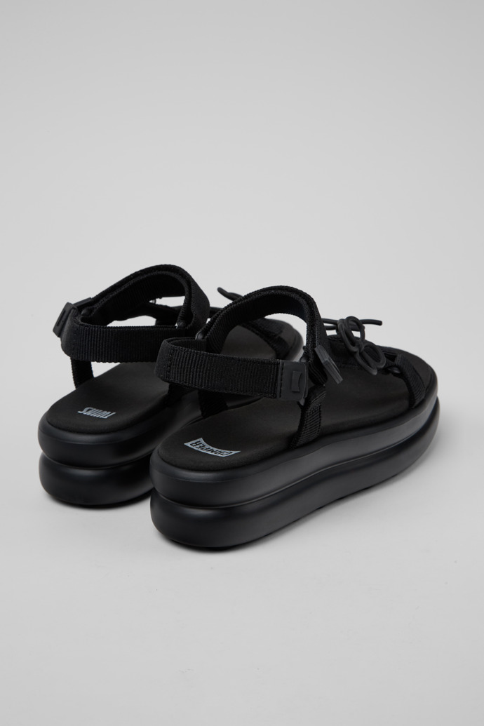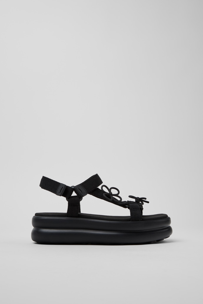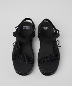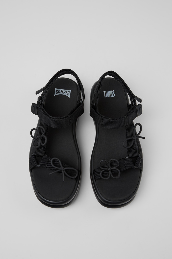 Sandalias para mujer en PET reciclado negro con plantillas de EVA, sistema de autocierre y suelas de EVA XL EXTRALIGHT®.Nacido en 1988, nuestro concepto clásico TWINS, opuestos pero complementarios, desafía la idea de que los zapatos deben ser idénticos y sigue vivo en estos zapatos de mujer que no hacen juego, pero forman una pareja realmente única.