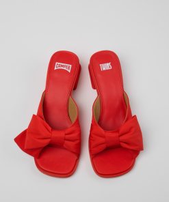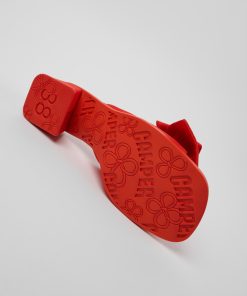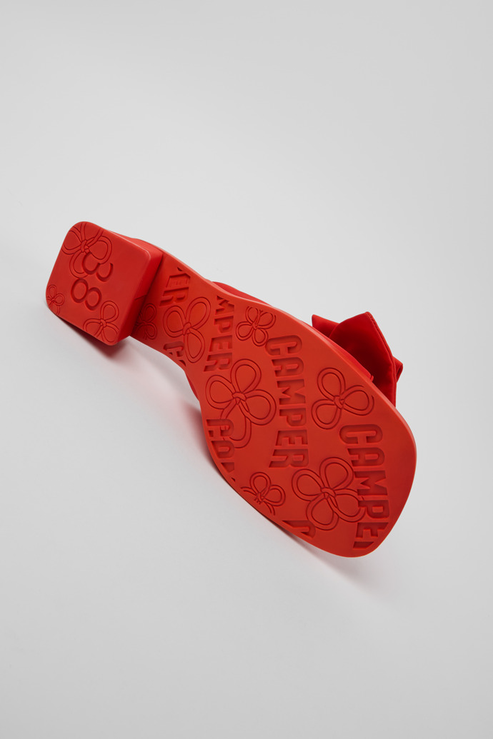 Sandalia para mujer de PET reciclado rojo con plantilla OrthoLite® Recycled™ y suela de goma y ABS.Nacido en 1988, nuestro concepto clásico TWINS, opuestos pero complementarios, desafía la idea de que los zapatos deben ser idénticos y sigue vivo en estos zapatos de mujer que no hacen juego, pero forman una pareja realmente única.