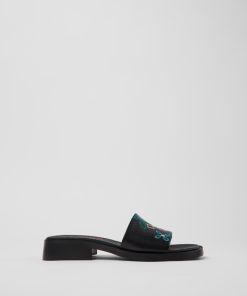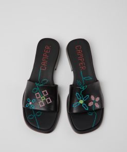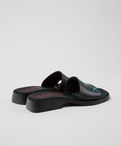 Sandalia para mujer en piel negra con plantilla OrthoLite® Recycled™ y suelas de EVA XL EXTRALIGHT®.Nacido en 1988, nuestro concepto clásico TWINS, opuestos pero complementarios, desafía la idea de que los zapatos deben ser idénticos y sigue vivo en estos zapatos de mujer que no hacen juego, pero forman una pareja realmente única.