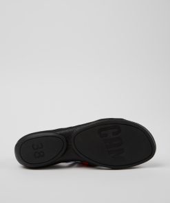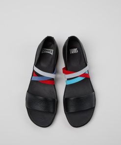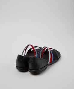 Sandalias para mujer negra de piel con plantillas de PU y suelas de goma (20% reciclada).Nacido en 1988, nuestro concepto clásico TWINS, opuestos pero complementarios, desafía la idea de que los zapatos deben ser idénticos y sigue vivo en estos zapatos de mujer que no hacen juego, pero forman una pareja realmente única.