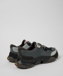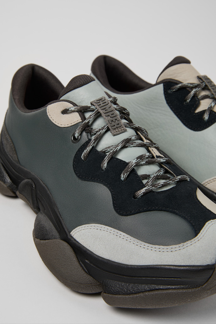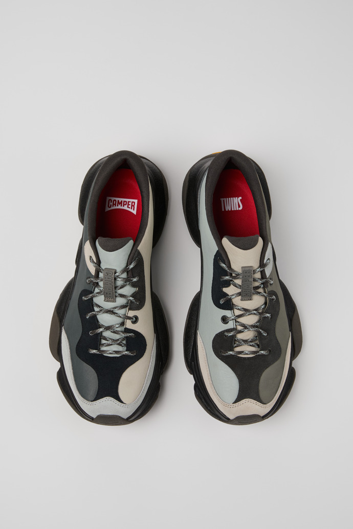 Sneakers grises y negras de piel vacuna y nobuk para hombre con plantillas OrthoLite® Recycled™, entresuelas ReXarge y suelas Vibram Ecostep (30% recicladas).Nacido en 1988, nuestro concepto clásico TWINS, opuestos pero complementarios, desafía la idea de que los zapatos deben ser idénticos y sigue vivo en estos zapatos de hombre que no hacen juego, pero forman una pareja realmente única.