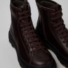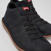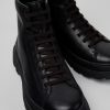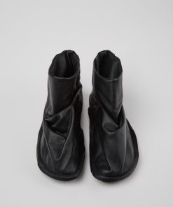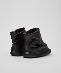 Botines para mujer en piel vacuna negra con plantillas de EVA y suelas de TPU (20% recicladas).Peu Form marca el comienzo de la colaboración entre Camper e Issey Miyake, dos marcas que celebran la creatividad y la funcionalidad, promoviendo los valores de la artesanía en la vida cotidiana.
