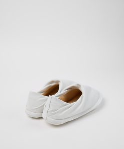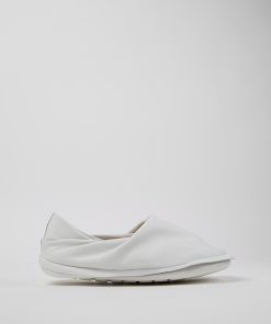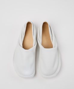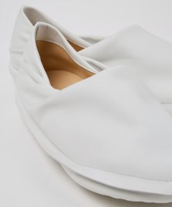 Zapato para hombre en piel vacuna blanca con plantillas de PU y suelas de TPU (20% recicladas).Peu Form marca el comienzo de la colaboración entre Camper e Issey Miyake, dos marcas que celebran la creatividad y la funcionalidad, promoviendo los valores de la artesanía en la vida cotidiana.