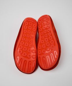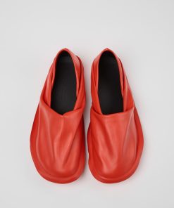 Zapato para hombre en piel vacuna roja con plantillas de PU y suelas de TPU (20% recicladas).Peu Form marca el comienzo de la colaboración entre Camper e Issey Miyake, dos marcas que celebran la creatividad y la funcionalidad, promoviendo los valores de la artesanía en la vida cotidiana.