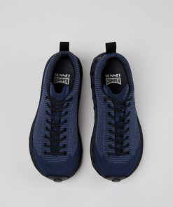Sneakers para mujer en tejido azul y negro con plantillas OrthoLite® Recycled™ y suelas de EVA XL EXTRALIGHT®.Camper y la marca italiana de lifestyle SUNNEI presentan PELOTISSIMA, un modelo reinterpretado del archivo de Camper. Diseñado para maximizar tu experiencia al caminar, PELOTISSIMA cuenta con una suela XL EXTRALIGHT® EVA con doble tachonado y el doble de amortiguación.