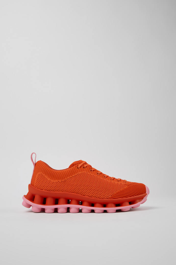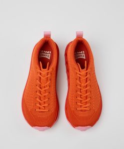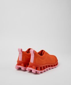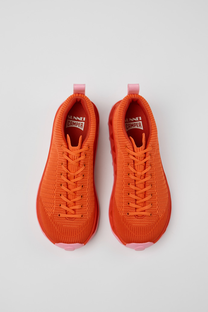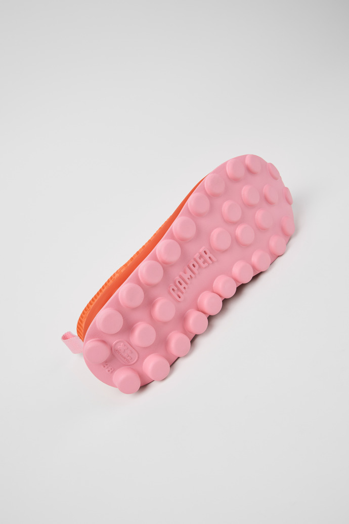 Sneakers para mujer de tejido rosa, naranja y rojo con plantillas OrthoLite® Recycled™ y suelas de EVA XL EXTRALIGHT®.Camper y la marca italiana de lifestyle SUNNEI presentan PELOTISSIMA, un modelo reinterpretado del archivo de Camper. Diseñado para maximizar tu experiencia al caminar, PELOTISSIMA cuenta con una suela XL EXTRALIGHT® EVA con doble tachonado y el doble de amortiguación.